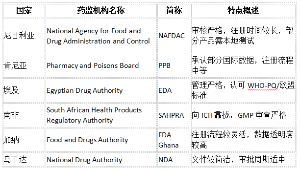 非洲54个国度,每个国度的药监体系体例和准入尺度差别大。以下为部门沉点国度药监机构(NRA)简介。